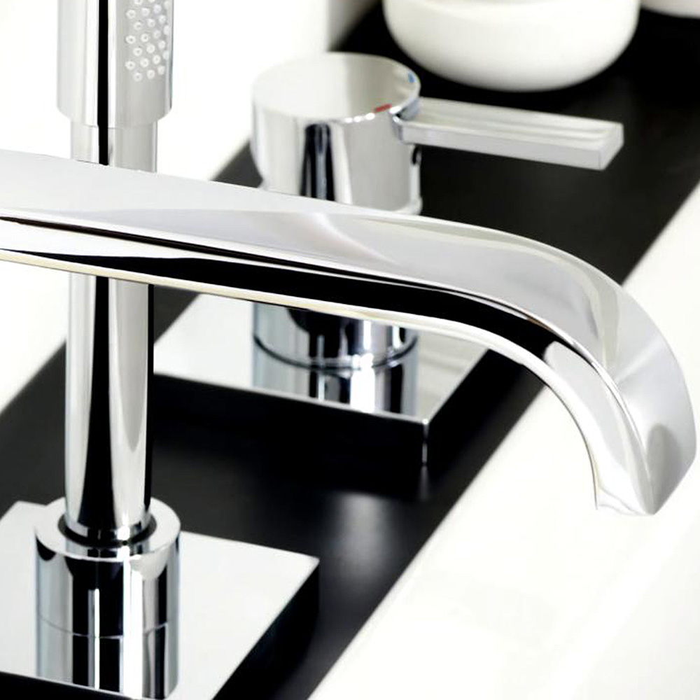 スクエアなプレートと円柱の組み合わせはバスルームを現代的に彩ります。外観の幾何学的なデザインに反して、なめらかなレバー操作のGROHE SilkMoveや、いつまでも衰えない輝きのGROHE StarLightが毎日のリラックスタイムをより上質なものにしてくれます。