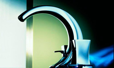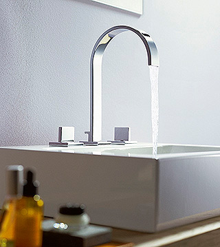 滝のような水の流れのスパウトは、「水の流れ」をもデザインするといったもの。