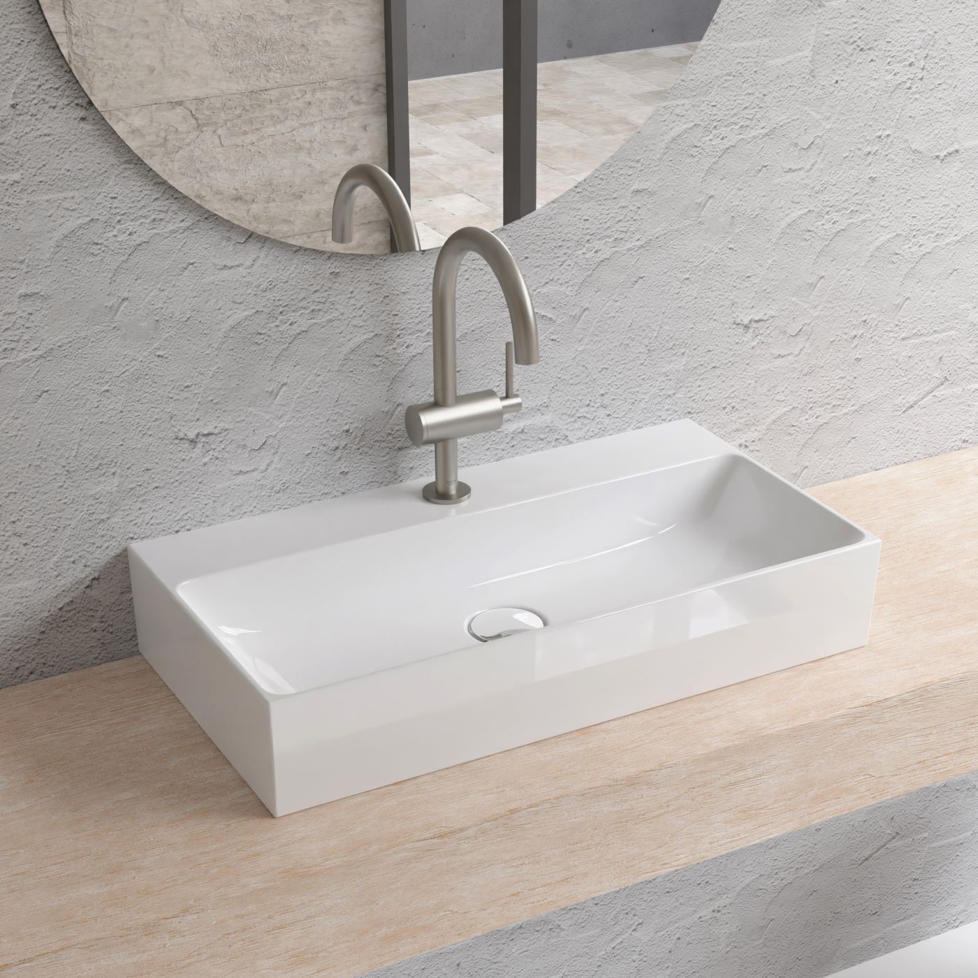 フォルムだけではなく、ボウル内部も直線と面で構成されており、その美しいエッジは陶器であることを一瞬忘れてしまうほど。シャープな印象が際立ち、モダンでシンプルな空間に自然と溶けこむようになっており、住宅から店舗、パブリックまで、様々なサニタリースペースをモダンでシャープに演出し、より上質な空間に変化させます。