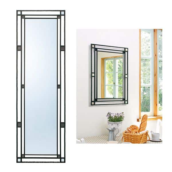 | 商品仕様 | ミラー取付方法についてはこちらをご参照ください 鏡面寸法:W344×H544mm ロートアイアン(ブラック) 槌目加工 吊り |