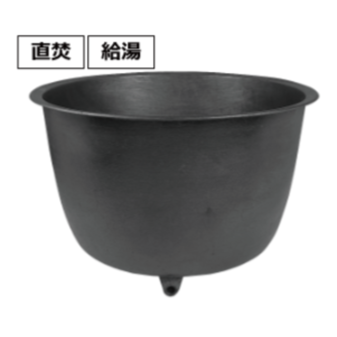 熱がやわらかく伝わり、まろやかな湯加減が肌にやさしい、鋳物[いもの]の風呂釜。