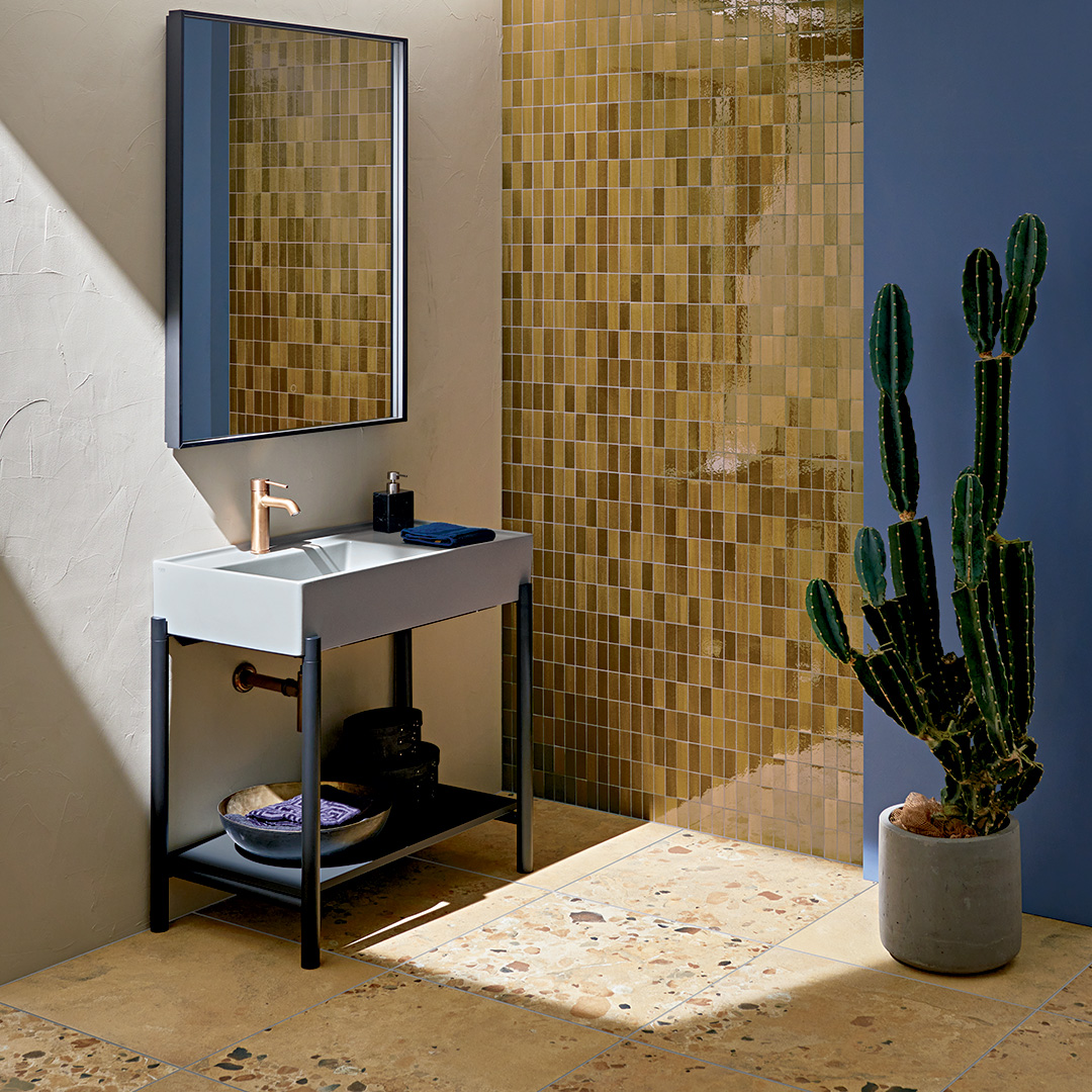 プリニオは、迫力の850mmのセラミックシンクと、フレーム・ボトムシェルフをコンビネーションしたコンポーネントタイプ洗面台です。
