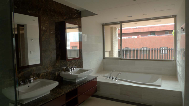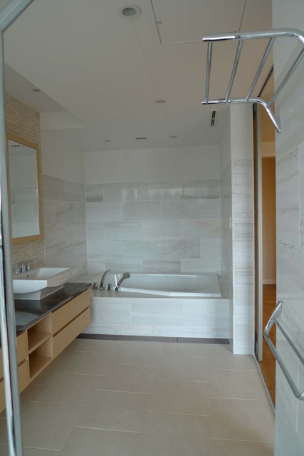 180センチを超えるような体格の良い方でも、余裕の1800×1200サイズでしっかりと受け止め、ゆったりご入浴いただけます。大型浴槽ということで足付きが不安な小柄な方やお子様でも、横向きに入ると足付きを確保でき安心して入浴できますので、様々な体格の方がいらっしゃる家族構成にも対応できます。こちらは右勝手モデルです。