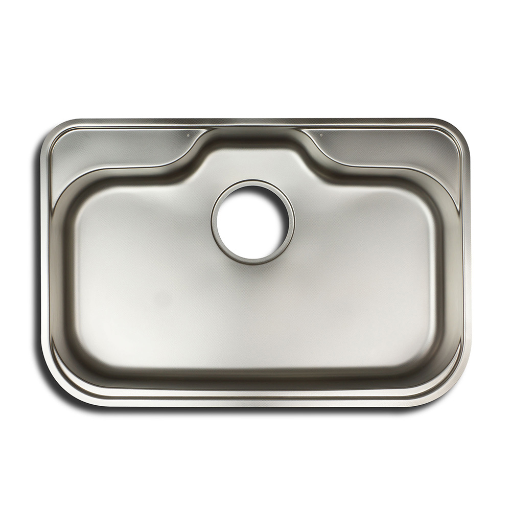 水栓デッキ・プレート置きのフランジを設けた実用性に富んだ機能的なデザインシンク。オプション追加でより機能性を楽しめるます。水栓穴位置はご注文前に図面上でご指定ください。