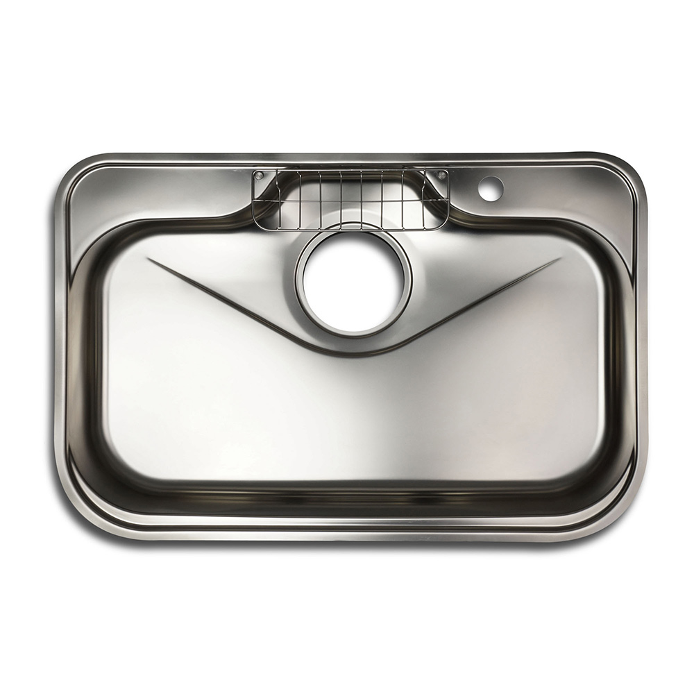 水栓デッキ・プレート置きのフランジを設けた実用性に富んだ機能的なデザインシンク。オプション追加でより機能性を楽しめるます。水栓穴位置はご注文前に図面上でご指定ください。