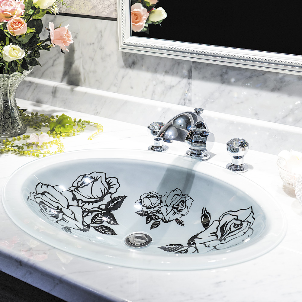 先祖代々受け継がれて来た伝統のボヘミアンクリスタルのカッティング技術による、繊細で美しい輝きは洗面スペースをゴージャスに演出します。