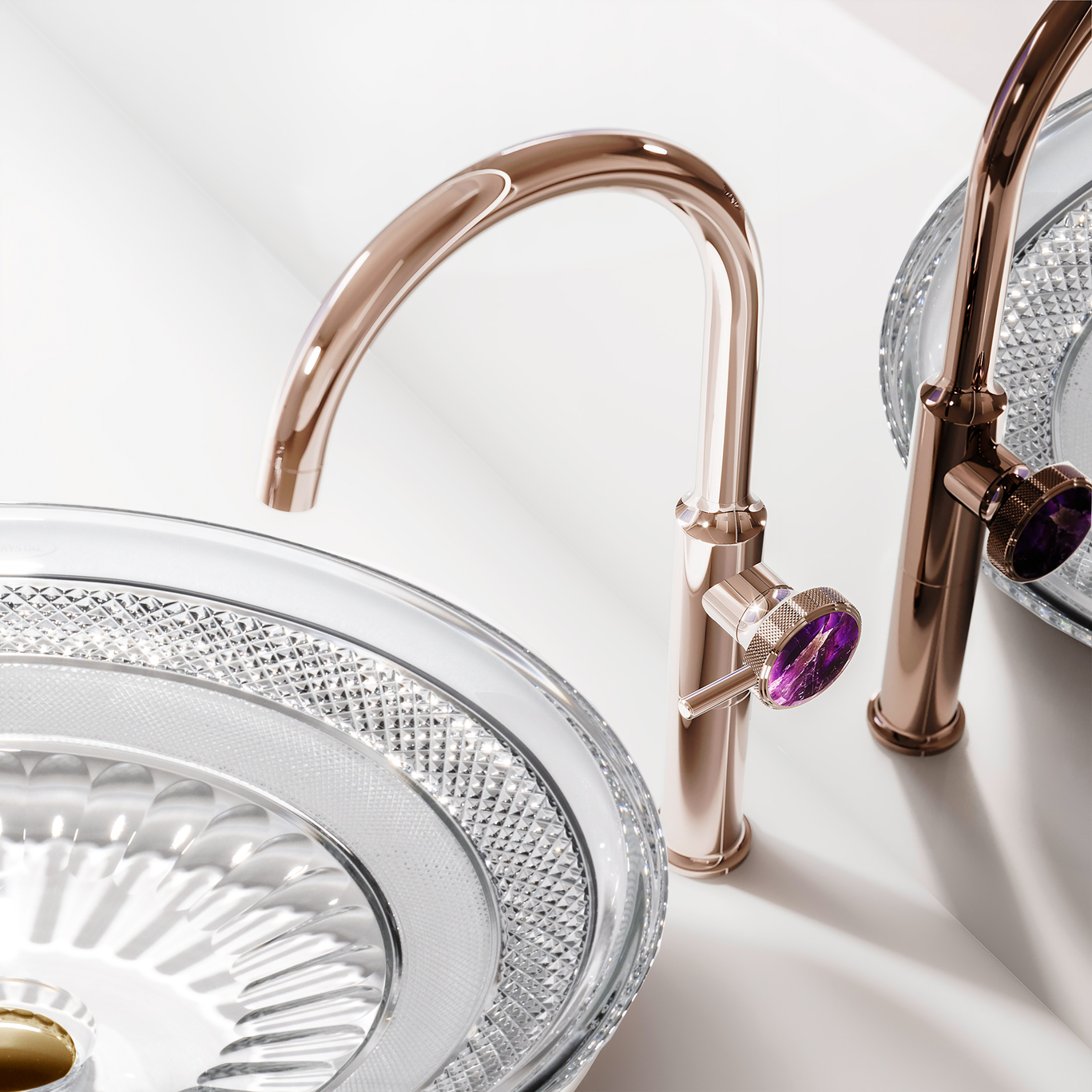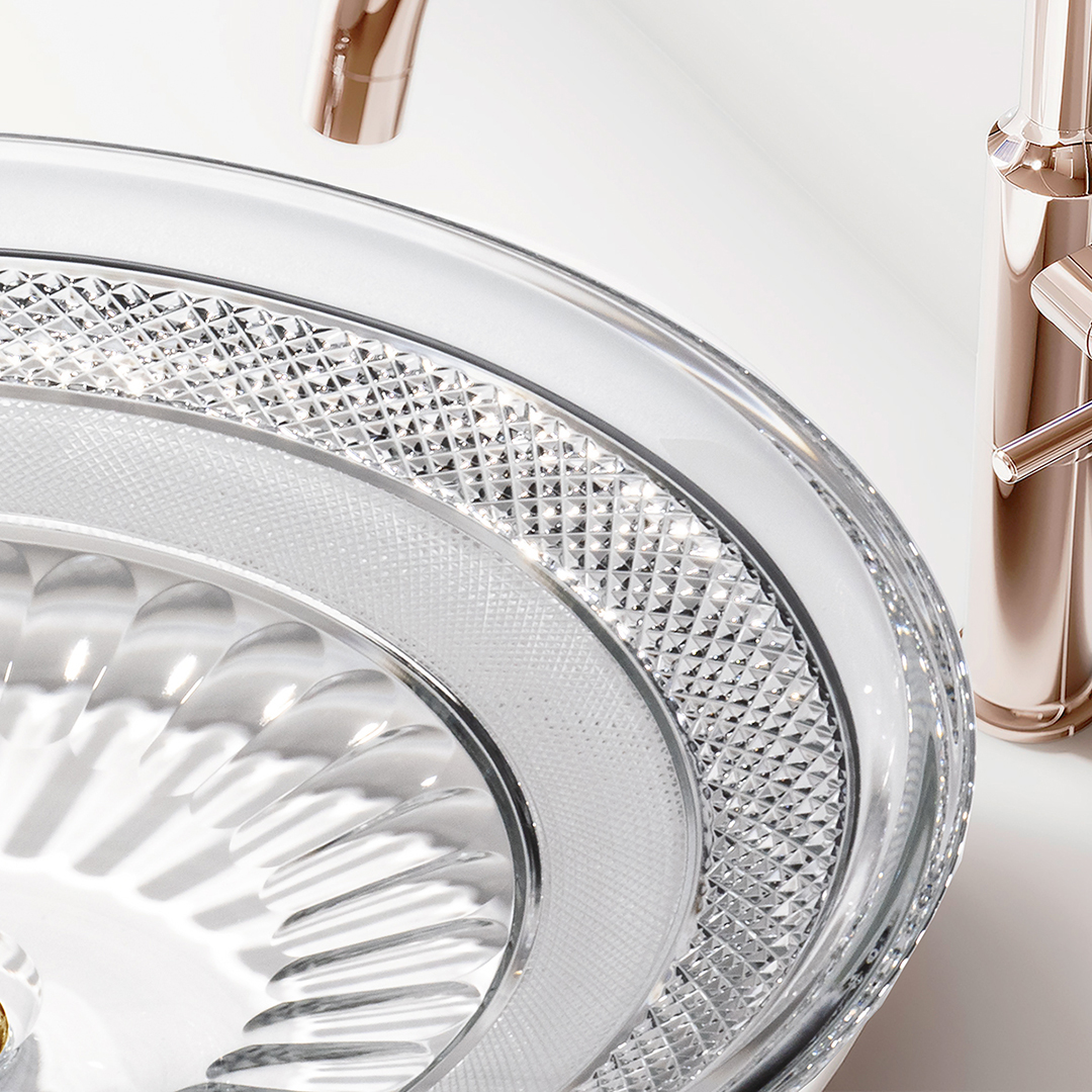 非常に高度なカッティング技術から生まれる洗面ボウルは、どの角度から見ても美しい輝きを放ちます。