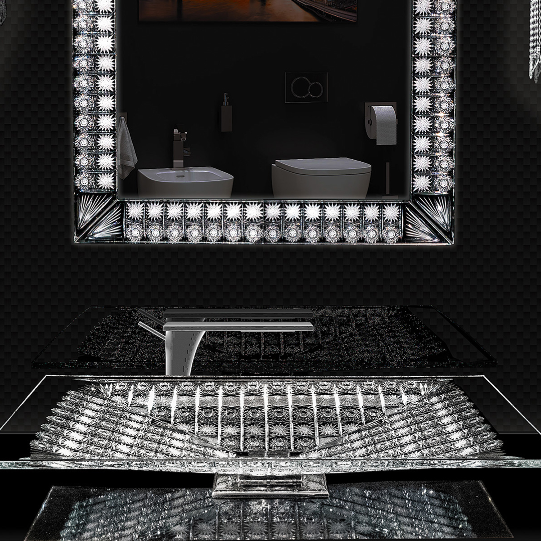 先祖代々受け継がれて来た伝統のボヘミアンクリスタルのカッティング技術による、繊細で美しい輝きは洗面スペースをゴージャスに演出します。